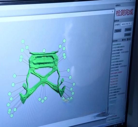 设备描述:针对汽车副车架的形位尺寸测量,设备包含视觉成像系统、二维图像识别系统、三维尺寸测量系统、用户交互系统、标定系统、统计分析系统的精密视觉测量设备。